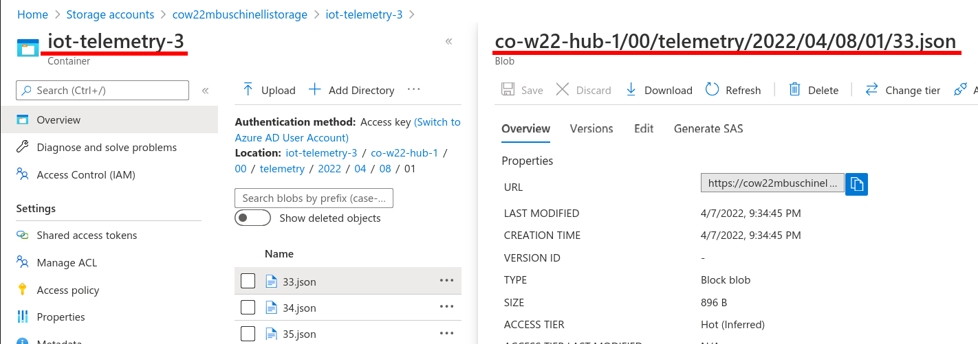 Here we have the container name on the left and the blob name on the right.#